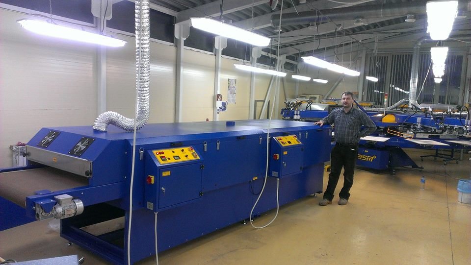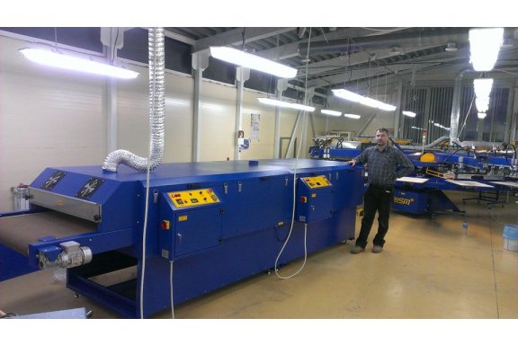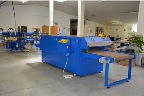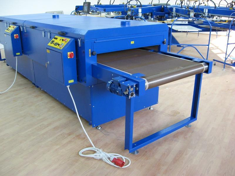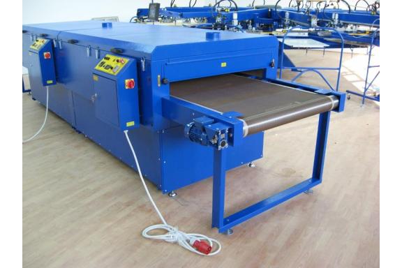DEL series electric dryer is affordable multitask tunnel dryer. With its segmental chamber design provides choice of productivity speeds. The choice of belt widths (24” - 60”) determines the max. curing element size. Compact transportation package foot print lowers transport cost and provides easy floor access. Conveyor belt system driven by AC gear reducer controlled with frequency converter drive. Belt speed is readable on LCD display. Remote belt speed adjustment possibility. Temperature true-on belt reading, PID temperature regulator control, independent heat chambers power supply and temperature settings. Low energy consumption is assured with 100 mm insulated walls, efficient IR ceramics and segmental design. Exhaust of fumes is gravitation type, while it do not affect temperature stability in heat chamber. Hot air adjustable flow with thermal insulated drive provides great flexibility in curing. ANY INK ON ANY SUBSTRATE CURING with DEL series tunnel dryer. As DEL series tunnel dryer combines 3 way of heating transmission it becomes universal for many substrates and ink types. In general DEL's series dryer can work in 3 modes: IR MODE explanation While Ceramic Infra Red heat elements provide heat as IR radiation transmitted directly into curing substrate. We benefit from IR radiation with low heat losses spread into surrounding air in heat chamber. We can also fit our transmitted wave length into the requirements of specific ink. Common mistake made by other manufactures is use of hight adjustment for IR elements. The reference point for temperature sensing is lost in such situation and calibration must be done for each height level separately.