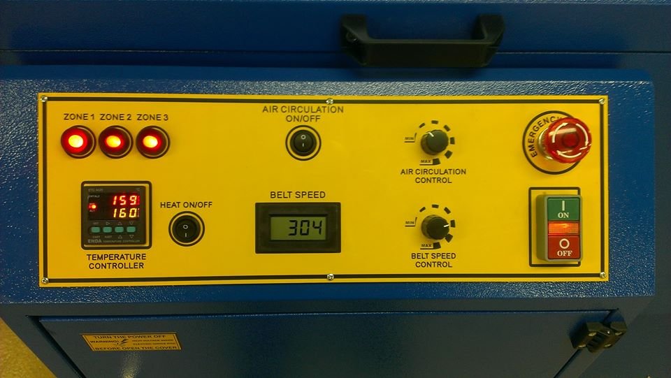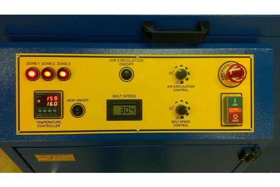 · Air circulation with adjustable flow, sucking air leaving heat chamber and guiding it evenly to the conveyor belt