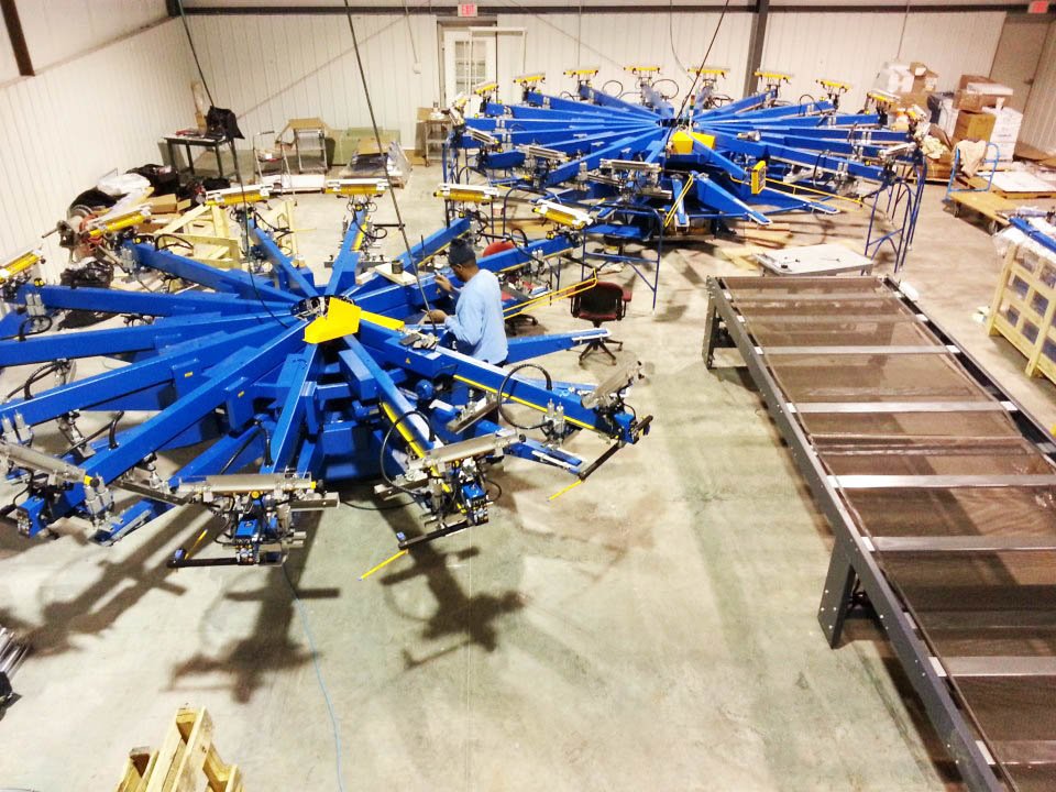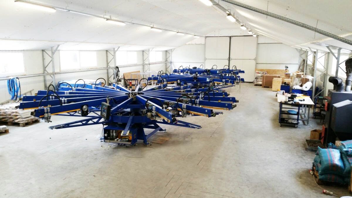 - Система регулировки рабочих столов во время орошения. Между каждым печатным оттиском стол может опускаться в нижнее положение (для орошения) или оставаться в верхнем положении во время орошения.