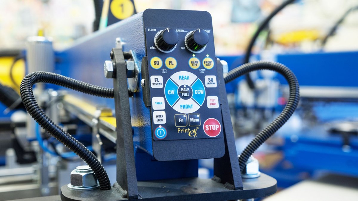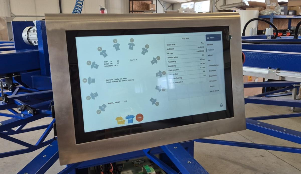 - Включает в себя дополнительную панель управления работой печатных голов и движениями машины.