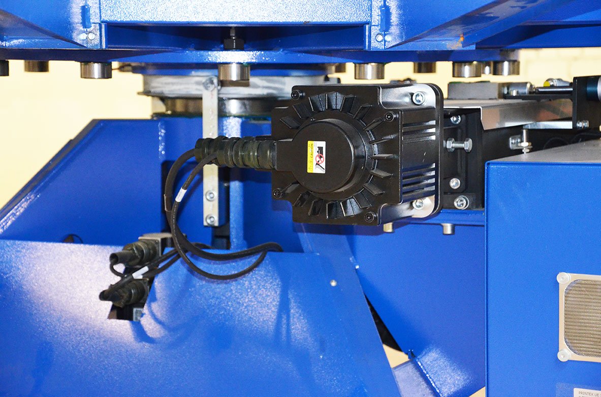 Точный сервопривод позволяет обеспечивать плавное вращение печатных столов по и против часовой стрелки.
