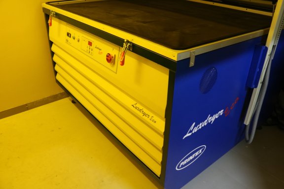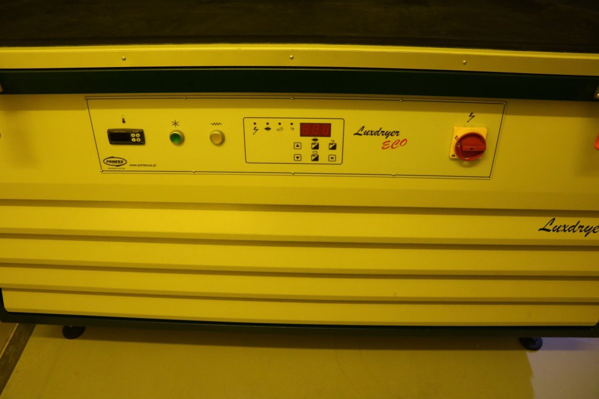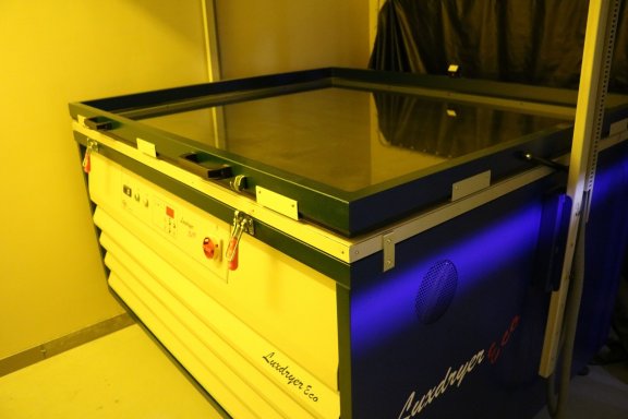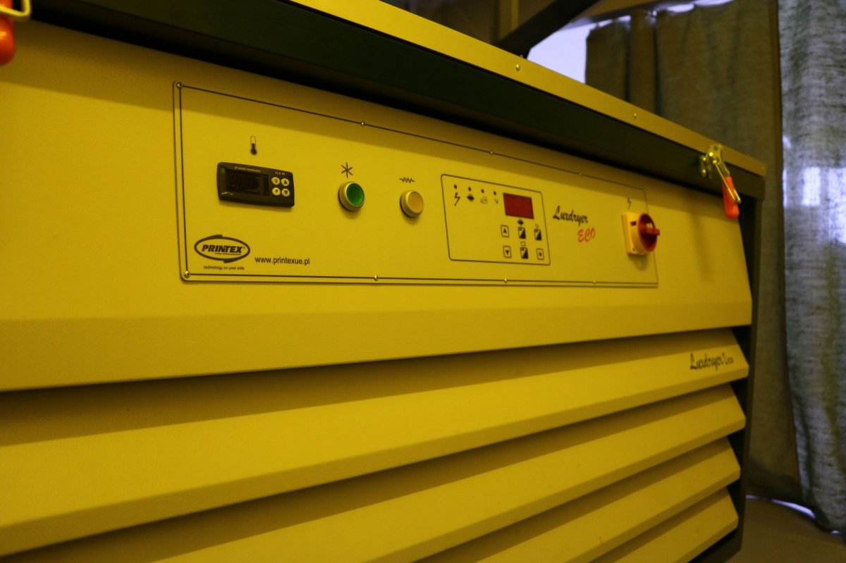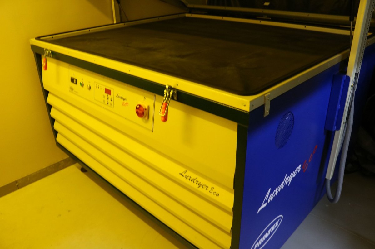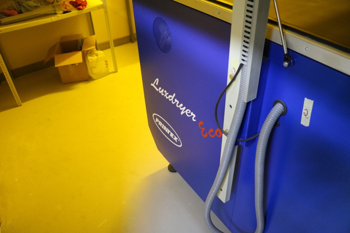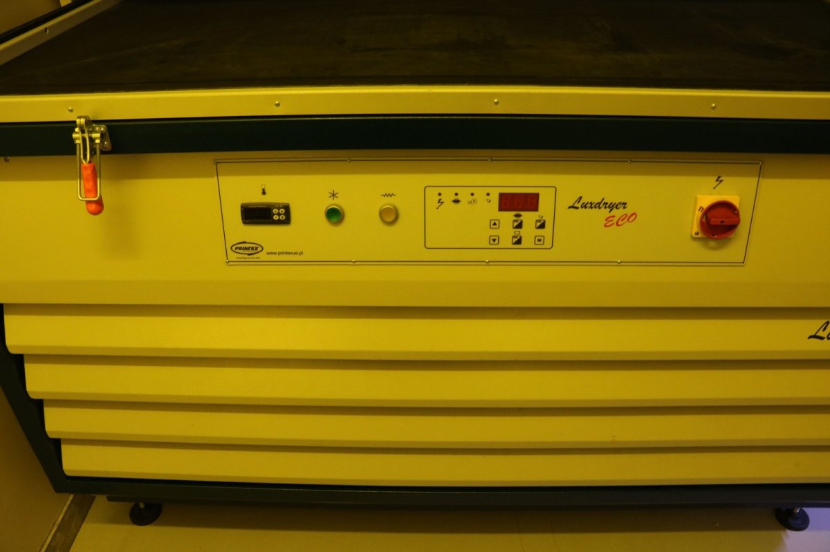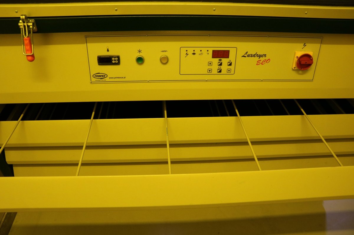Очень важным моментом в процессе изготовления печатной формы является сушка нанесенной эмульсии. Сушильное устройство PRINTEX SCREEN DRYER, встроенное в EXON, имеет горизонтальное построение и позволяет достичь равномерной толщины слоя эмульсии по всей площади сетки. Правильная циркуляция воздуха в системе вентиляции обеспечивает быстрое высыхание эмульсионного слоя. Регулировка температуры в сушильной камере происходит цифровым образом. Сушильный шкаф сделан из специальной стали, которая позволяет сохранить тепло внутри сушильного аппарата. Максимальное количество рам, которые одновременно могут сушиться в сушильном шкафу, может достигать 4 единицы максимального формата. Сушильный шкаф SCREEN DRYER предлагается и в качестве самостоятельного устройства (без экспонирующей секции).