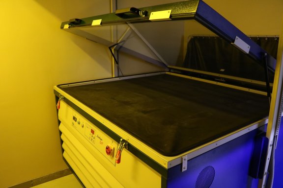 Барьерные шторки УФ лампы откроются. В этом режиме включение ваккуума и отсчет времени экспонирования не активизируются. Выдержите необходимое время «задубливания» и повторно нажмите кнопку MAN, для закрытия шторки УФ лампы.