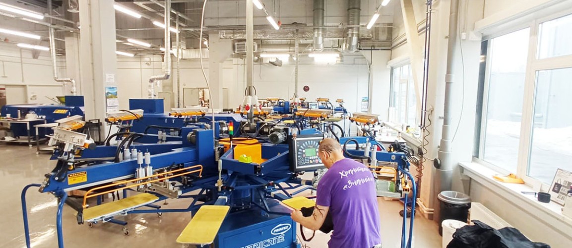 В компании «ХЕППИ ВЕАР ЮГ» установлен комплект оборудования «PRINTEX». Инсталлирован следующий комплект: Автоматический сервоприводный станок PRINTEX HURRICANE SLE 10/12 Туннельная 7 метровая сушка DEL...