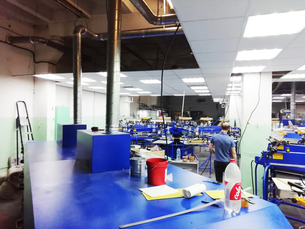 Помимо печатной машины, на производственной базе было установлено сушильное оборудование в составе туннельной ИК-сушки PRINTEX DELTACURE 48158A (зона сушки – 400 см ширина транспортного ремня – 122 см, общая длина 680 см) и четырех промежуточных сушек PRINTEX CLH 2030.