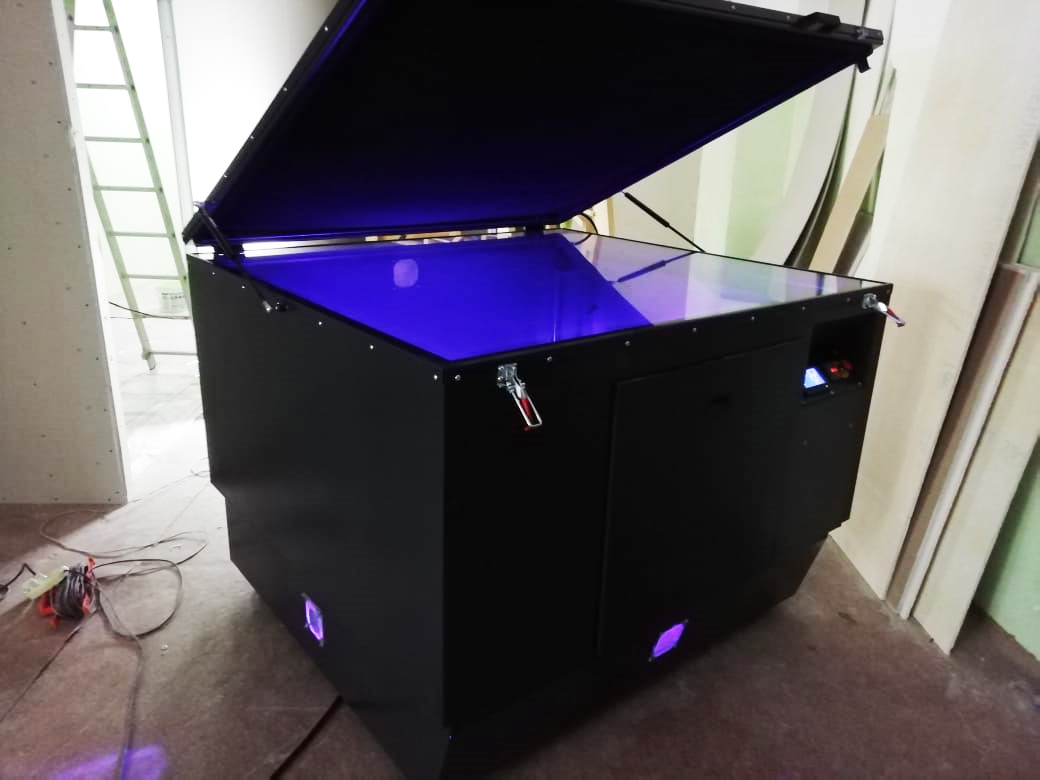 Допечатный участок был обновлен экспонирующим устройством ALPHA LIGHT. Экспонирующие устройства ALPHA LIGHT используют точечный источник света – металогалогеновую лампу, которая позволяет избежать обычного светорассеяния. Данная система экспонирования является на сегодняшний день наиболее предпочтительной для засветки не только тонких, но также толстых слоев эмульсии и капиллярных пленок. Мощный вакуум совместно с плотно прилегающей к раме вакуумным «одеялом» позволяет получить отличный контакт между позитивом (пленкой) и сеткой. Это обеспечивает надёжное и точное воспроизведение высоколиниатурных изображений.
