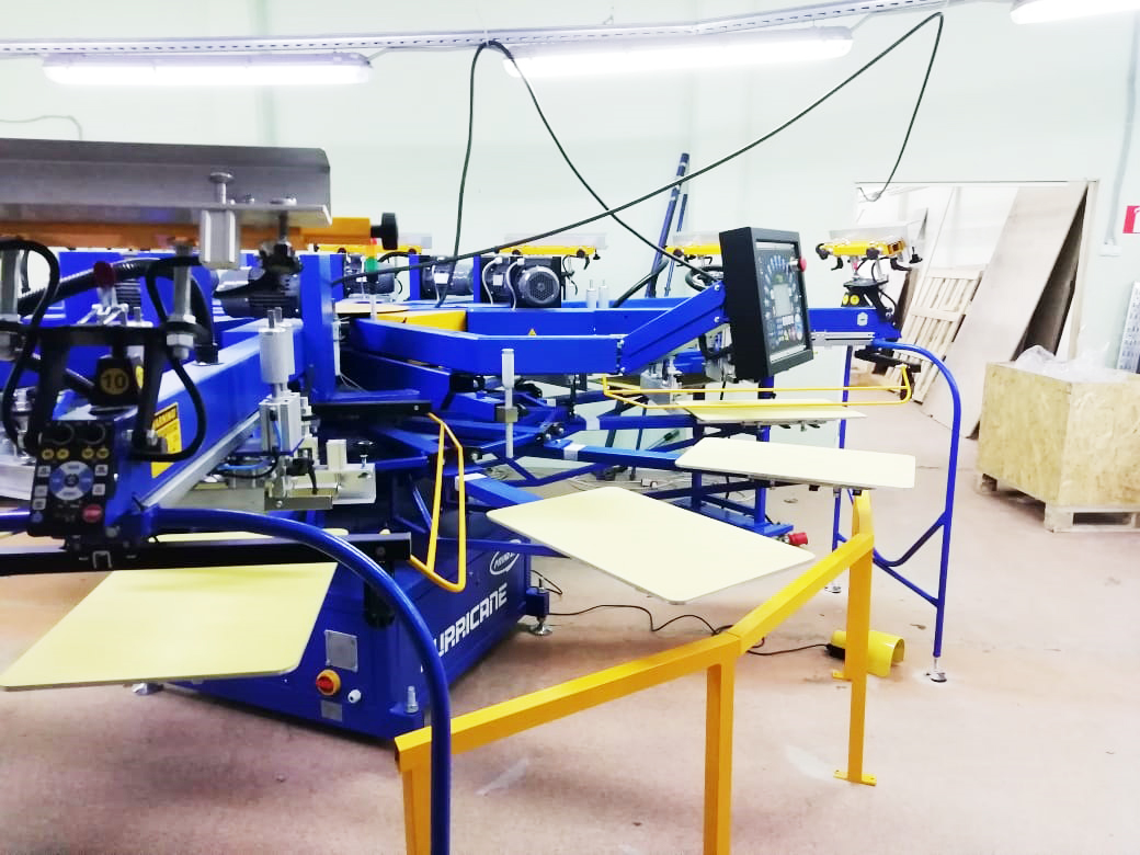 Приобретенный сервоприводный автомат HURRICANE SLE является высокопроизводительной печатной машиной, сочетающей в себе все преимущества младших моделей компании «PRINTEX» для начинающих производств и машин флагманского уровня, ориентирующихся на производства промышленного масштаба. Привод печати, вращения и подъема столов осуществляется за счет серво- и электро- моторов, что позволяет добиться высокой плавности движения столов в обоих направлениях, точности печати и бесшумной работы оборудования. Подъем столов производится с помощью точного сервопривода, что позволяет регулировать печатный зазор цифровым образом. Пневматическая и механическая системы фиксации рам гарантируют их быструю установку и отличную устойчивость. К стандартным характеристикам машины относится также система пневматической фиксации и регулировки давления ракеля/контрракеля, при этом настраивать скорость движения ракеля/контрракеля можно независимо на каждой печатной голове, при этом печатные головы включают в себя дополнительные панели управления, что ускоряет процесс настройки машины и облегчает эксплуатацию. Скорость и крутящий момент контролируются электроприводной кареткой с частотным преобразователем.