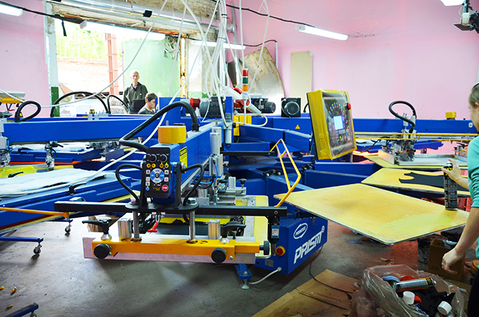 Специалисты компании «PRINTEX RUSSIA» произвели установку и запуск сервоприводной трафаретной машины PRISM II 8/12, а также пяти промежуточных сушек CLH 2840 в городе Рославле Смоленской области. Сферой деятельности компании, которой руководит индивидуальный предприниматель Олег Владимирович Попов, является печать на футболках и толстовках.