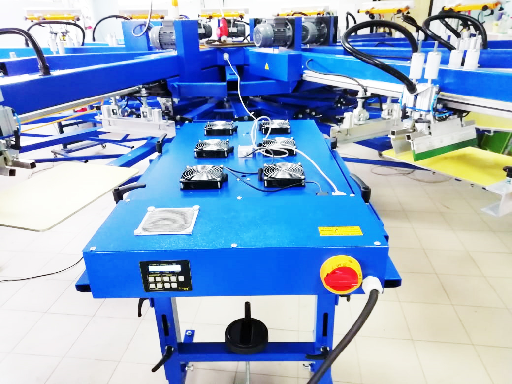 Вместе с печатным автоматом также были введены в эксплуатацию 2 шт. «флеш» сушек CLH 2030. Промежуточные ИК-сушки CLH пользуются неизменной популярностью, поскольку давно зарекомендовали себя как надёжные, многофункциональные и простые в эксплуатации устройства – они характеризуется наличием в базовой комплектации цифровых регулировок времени, мощности, температуры столов и зон сушки, а также возможностью выбора различных режимов и циклов работы.