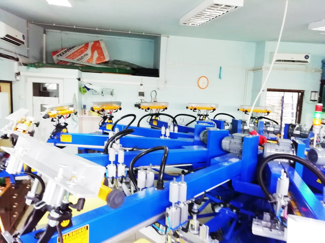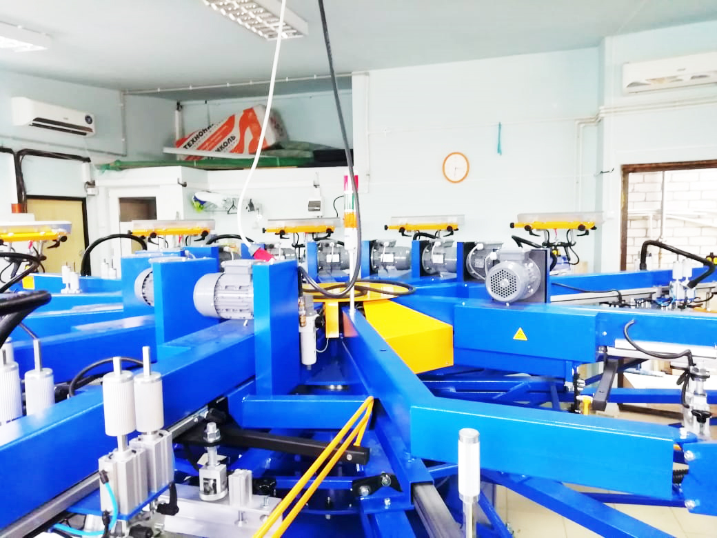 Красочность станка может достигать 12-ти цветов, при этом стандартный формат печати составляет 50х65 см, а максимальный может достигать 90х90 см. за счёт применения фронтальных держателей рам, которые, в отличие от боковых, позволяют использовать столы большего формата, реализуя механизм двойного индексирования (запечатка изделия целиком через позицию).