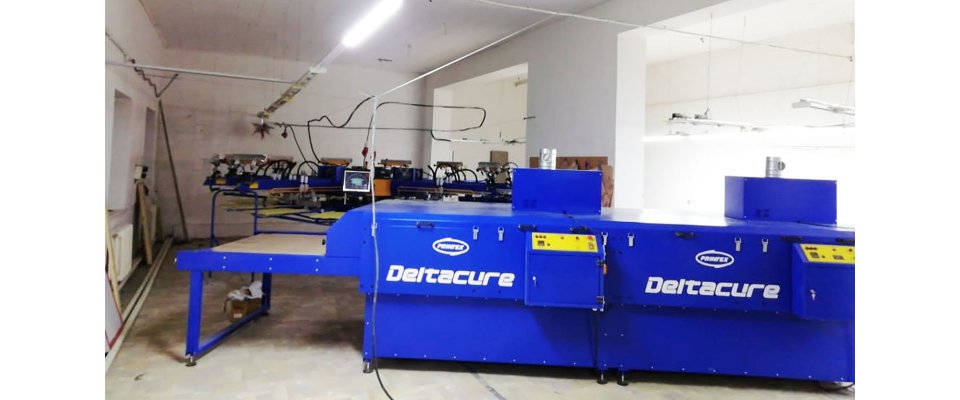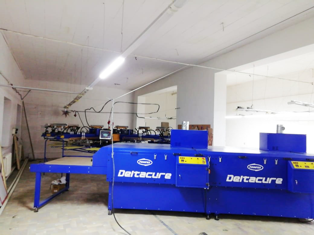 «PRINTEX RUSSIA» на производственной базе компании «EVAMAR» ввела в эксплуатацию комплект оборудования, включающий в себя карусельный сервоприводный автомат PRINTEX SPECTRUM SLE 10/12, туннельную сушку PRINTEX DELTACURE 38158A, экспонирующее устройство ALPHA LIGHT, сушильный шкаф SED и три промежуточные сушки PRINTEX CLH 2030.