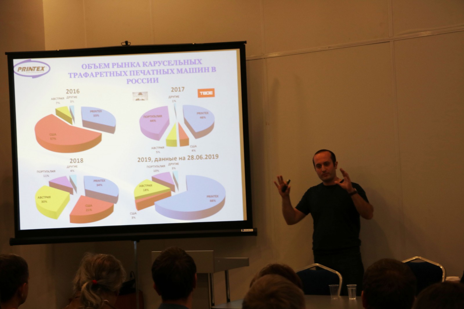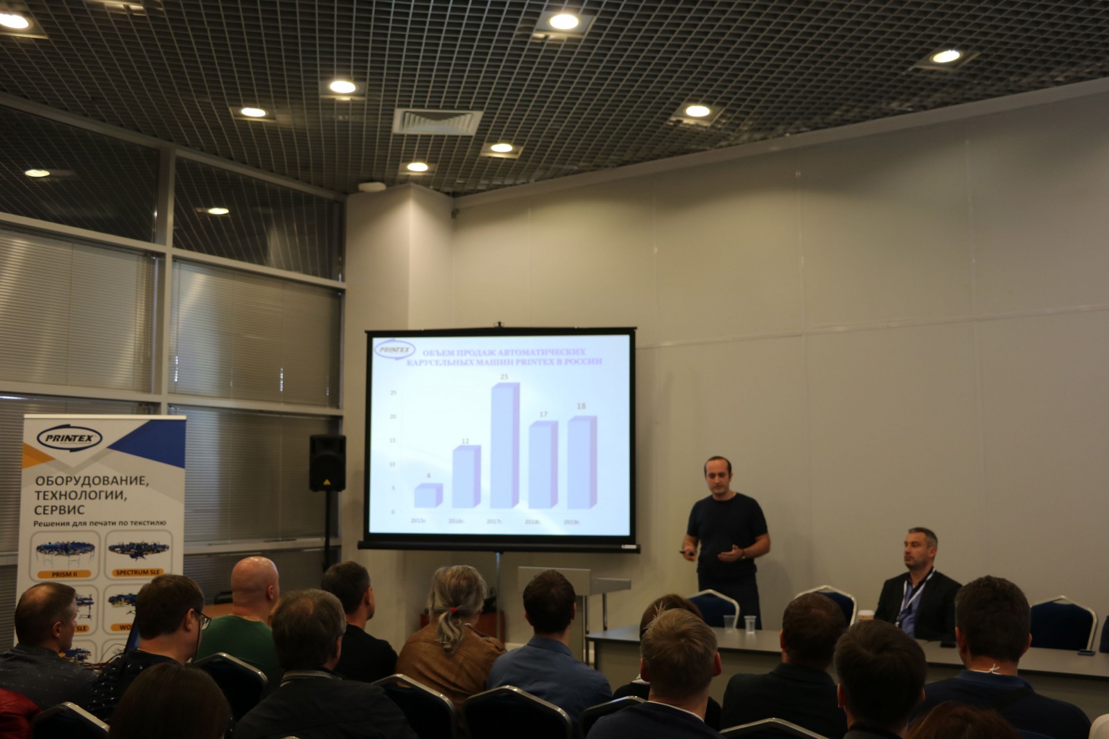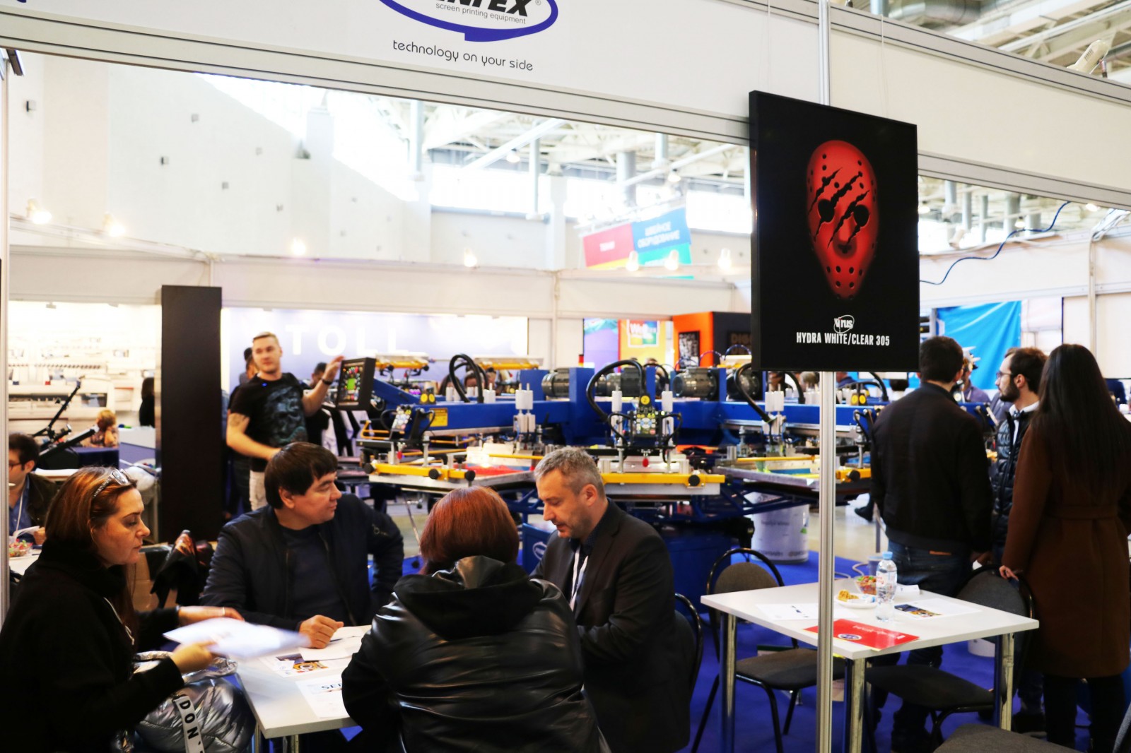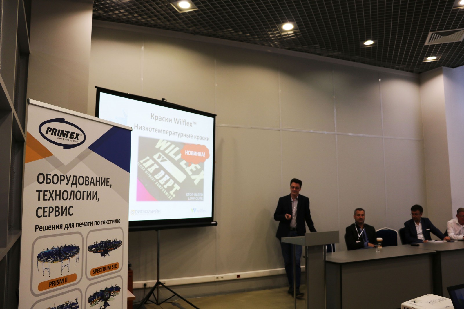 «PRINTEX RUSSIA» совместно c компанией «ДИГЛ ДИЗАЙН» (www.diglprint.ru), ведущим Российским поставщиком расходных материалов для трафаретной печати, приняла участие в осенней выставке ТЕКСТИЛЬЛЕГПРОМ 2019. На стенде все дни выставки демонстрировался процесс печати 6-ти цветного дизайна (дизайн – от молодежной одежды GOOD www.gooood.ru) пластизолевыми флуоресцентными красками «WILFLEX» на трафаретном автоматическом карусельном станке «PRINTEX» HURRICANE SLE 10/12. Также, в рамках выставки, компаниями был проведен совместный семинар по краскам «WILFLEX» и трафаретному оборудованию «PRINTEX». Спикерами выступили Сергей Качалов (ДИГЛ ДИЗАЙН), Philip Collins-Shone (WILFLEX), Акакий Джваршеишвили (PRINTEX RUSSIA), Andrzej Sleszynski (PRINTEX UE s.c). На семинаре вступительное слово взял Максим Гудков, коммерческий директор компании «ДИГЛ ДИЗАЙН», который анонсировал новость по скорому открытию демонстрационного зала на базе оборудования «PRINTEX» в технологическом центре компании «ДИГЛ ДИЗАЙН». Далее Сергей Качалов (ДИГЛ ДИЗАЙН) и Philip Collins-Shone (WILFLEX) представили информацию по пластизолевым краскам «WILFLEX», подробно затронув вопросы по системам смешения по понтону и тему спецэффектов. Акакий Джваршеишвили (PRINTEX RUSSIA) и Andrzej Sleszynski (PRINTEX UE s.c) представили информацию по ассортименту предлагаемых печатных станков, сфокусировали внимание на флагмане – автоматическом карусельном печатном станке PRISM II. Привели подробную информацию по объему продаж оборудования «PRINTEX» на Российском рынке, а также представили актуальную информацию по объему рынка и распределению доли рынка за последние четыре года между основными производителями трафаретного оборудования. Выставочный печатный станок был продан в компанию «ПОСТИКА ПРИНТ». Данный автомат станет уже второй печатной машиной «PRINTEX», приобретенной компанией менее чем за один год.